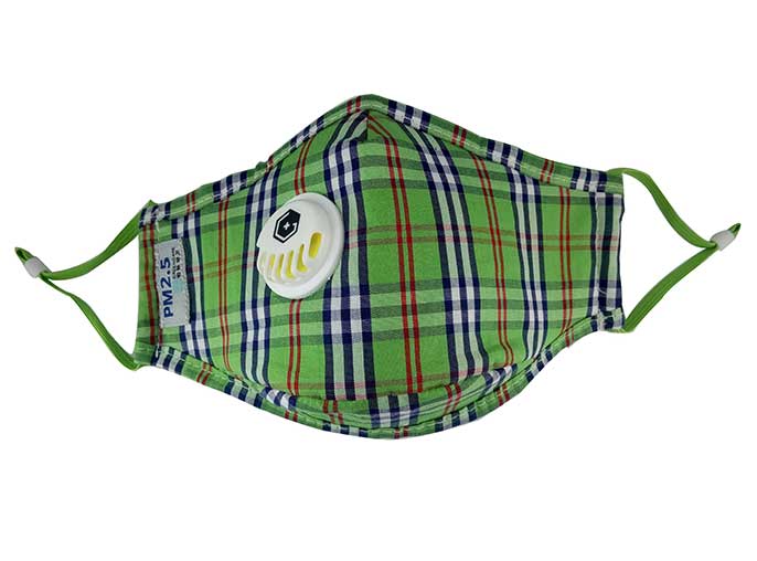 Cotton Mask with Breathing Valve-Grass Green Plaid